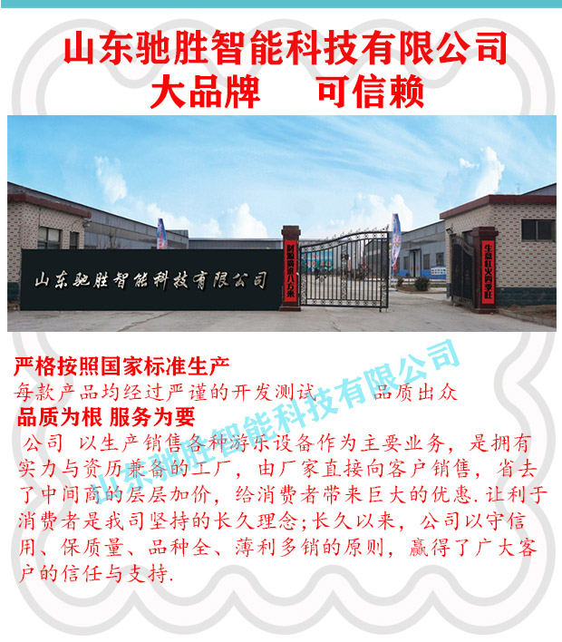 山東馳勝智能科技集團(tuán)有限公司秉承“向遠(yuǎn)方,容世界,敢為先,造歡樂(lè)”的經(jīng)營(yíng)理念-追求和打造景區(qū)游樂(lè)場(chǎng)四季休閑游樂(lè)品牌作為發(fā)展目標(biāo)